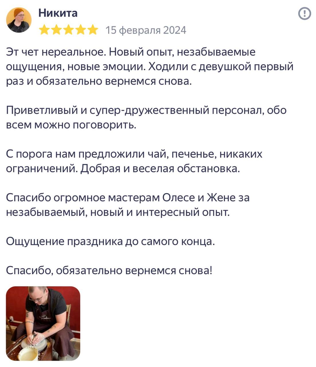 функциональная керамикаНа мастер-классе вы сможете создать собственный шедевр и не переживайте, если вы ни разу ранее не держали в руках глину – большинство наших гостей знакомятся с гончарным кругом у нас уже на первом занятии создают отличные по качеству изделия.