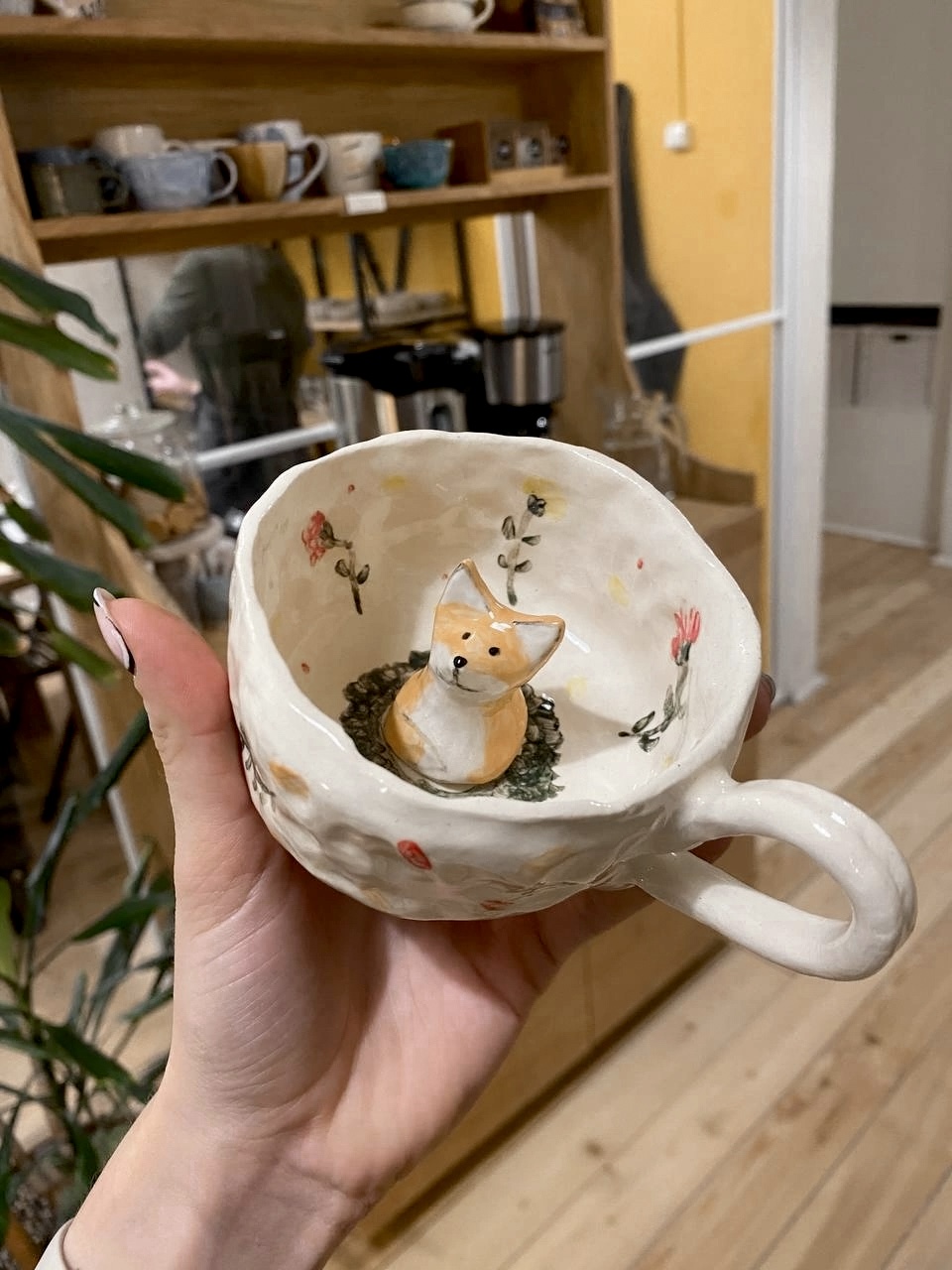 Поместить в кружку можно кого угодно: зайчика, лисёнка, котёнка — кого больше любите!